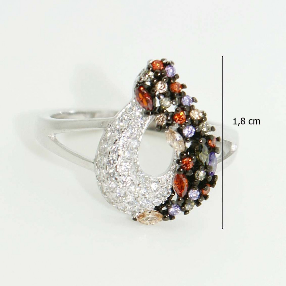 The harmony of small details makes this ring truly special, evoking both warm autumn landscapes and the varied colors of nature. The delicately curved shape of the silver drop ring with colorful zirconia stones is elegant and feminine, and the drop shape is an eternal symbol of sensitivity and flowing energy. The brown, green, mustard yellow, and white shades of the zirconia stones perfectly reflect the warm tones of autumn and add natural charm to your look.