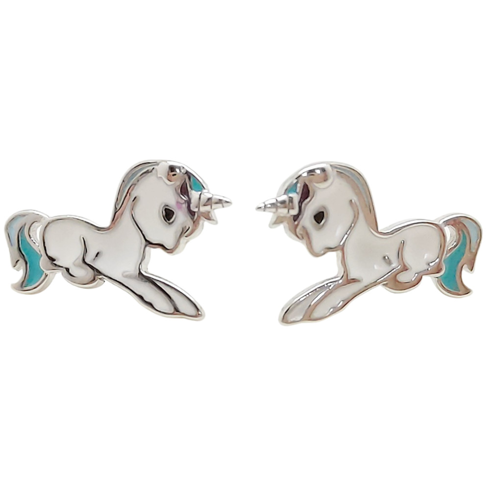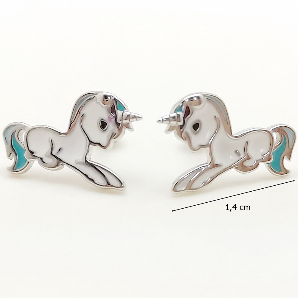 The earrings are made of fine silver, which ensures a lasting shine and does not cause irritation, so even children with sensitive skin can wear them with confidence. The blue and white unicorn design is eye-catching and decorated with stunning details that immediately grab your attention. The meticulously crafted unicorn is a true fairy-tale creature that brings joy and magic to everyday life.