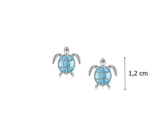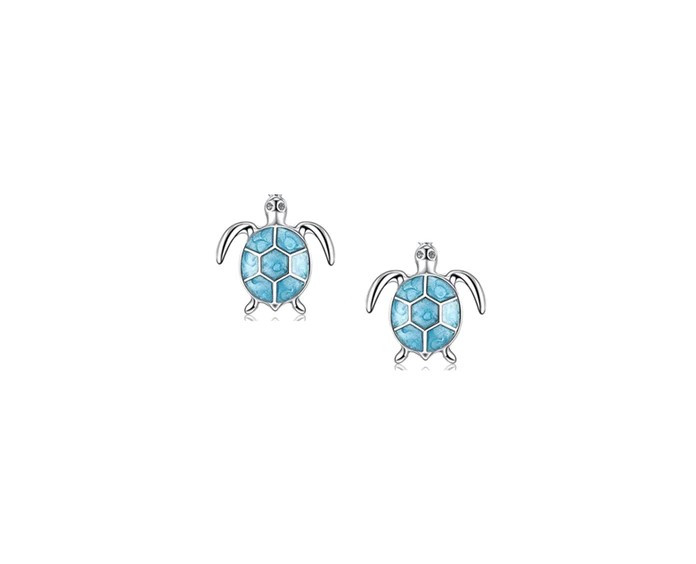 Rhodium-plated silver blue stone turtle stud earrings made of 925 Sterling Silver, decorated with zirconia stones. Complete your beach-inspired look with a matching blue stone turtle silver pendant. Recommended for both children and adults.