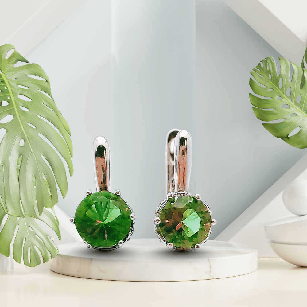 Style tip - Silver earrings with champagne and green color-changing round zirconia stones