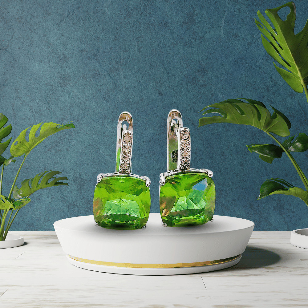 Style tip - Silver earrings with sparkling and green color-changing square zirconia stones