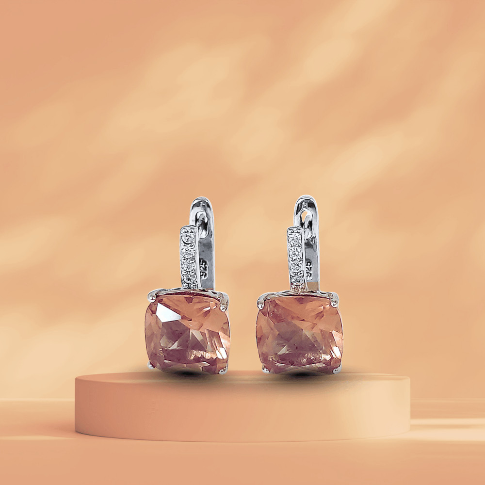 These silver earrings with champagne and green color-changing square zirconia stones are a combination of sophisticated elegance and playful modern design. The rhodium-plated surface of the 925 Sterling Silver highlights the sparkle of the square zirconia stones, which change color from champagne to green depending on the light. The French clasp ensures a secure and comfortable fit, making them ideal for both everyday and special occasion wear.