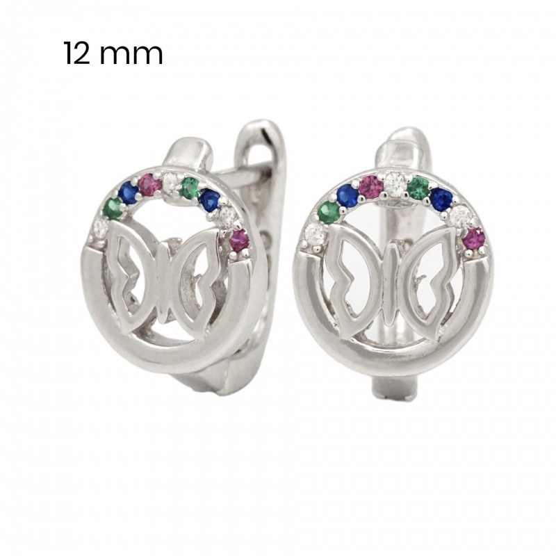The circle surrounding the butterfly is decorated with zirconia stones in bright and vibrant colors, which reflect light beautifully, making them sparkle magically from every angle. The rhodium coating ensures that the silver does not oxidize and always sparkles as brightly as on the first day. The French clasp earrings are lightweight and comfortable to wear, making them perfect for both special occasions and everyday wear.