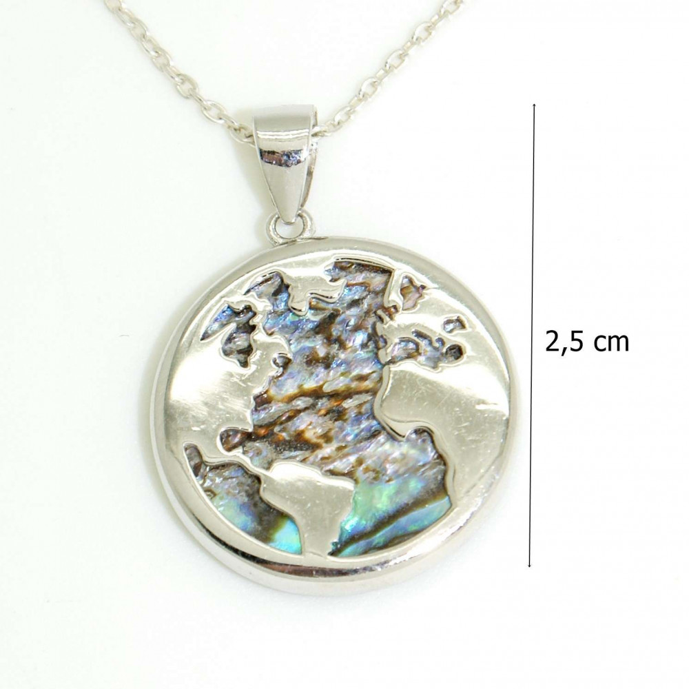 A magical silver pendant with an Earth motif and multicolored mother-of-pearl decoration. Made of high-quality 925 Sterling Silver, which is not only durable but also hypoallergenic, making it ideal for those with sensitive skin. (The chain is for illustration only and is not included in the jewelry.)