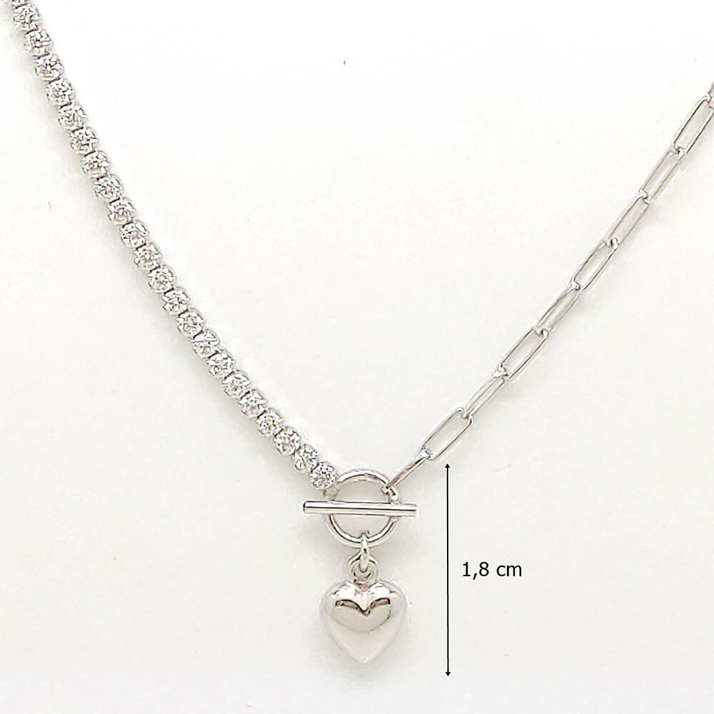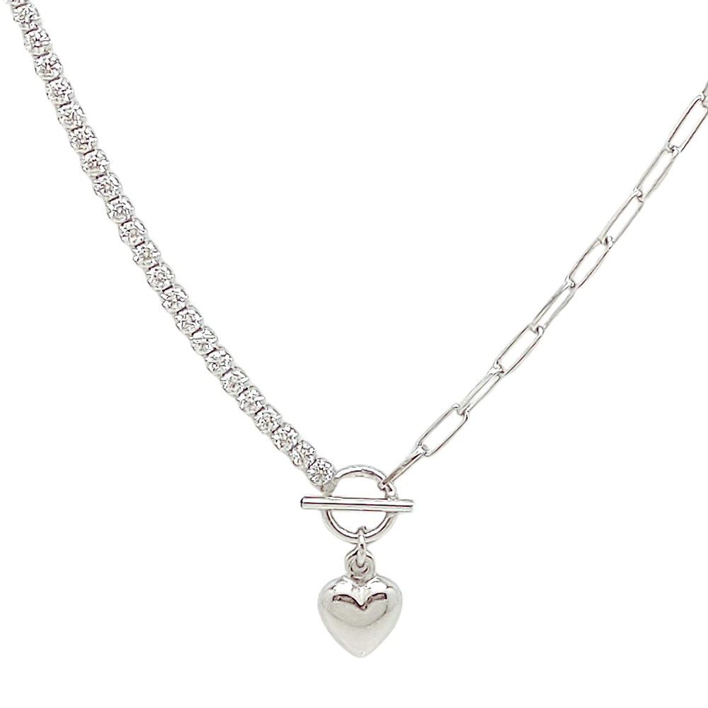 Silver heart charm necklace with mismatched chain
