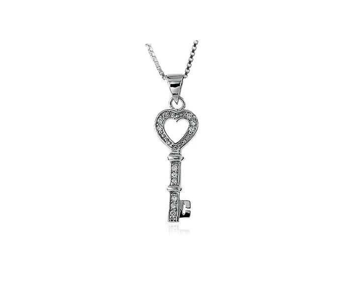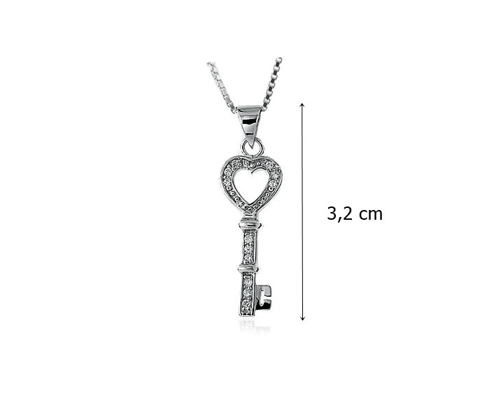 The silver heart key pendant with zirconia is an elegant and timeless piece of jewelry that can be the perfect accessory for your everyday outfits. It is made of high-quality sterling silver, which ensures the pendant's durability and shine. The key symbolizes the opening of doors and new opportunities, while the heart symbolizes love, so wearing it can have a special meaning for you.
