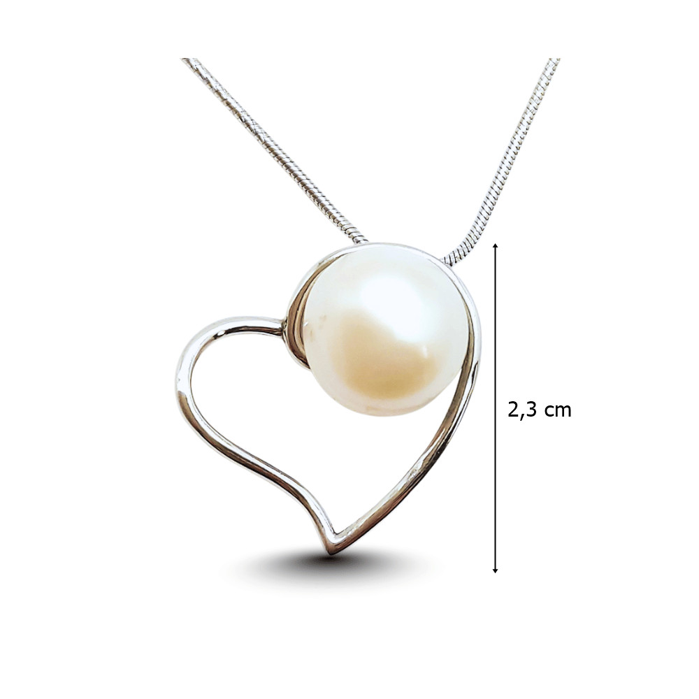 The silver heart pendant with pearl is a timeless romantic accessory. The delicate pearl adorns the center of the heart, highlighting the elegance of the rhodium-plated 925 Sterling Silver surface. Its clean, feminine shape makes it perfect for everyday wear and special occasions.