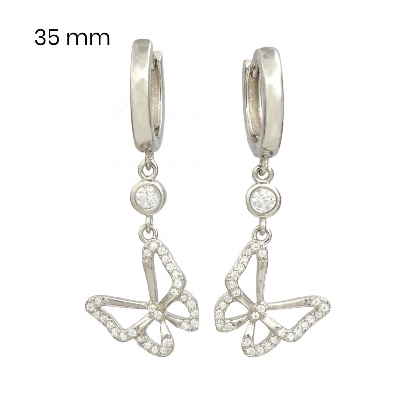 The silver hoop earrings with hanging butterflies are a truly spring-like and cheerful accessory that will brighten up any outfit. The 925 Sterling Silver, rhodium-plated material ensures the durability and sparkle of the earrings, while the dangling butterfly gives them a delicate and feminine look. These earrings are the perfect choice for everyday wear, but you can also wear them on special occasions to add a little extra cheer and elegance to your look.