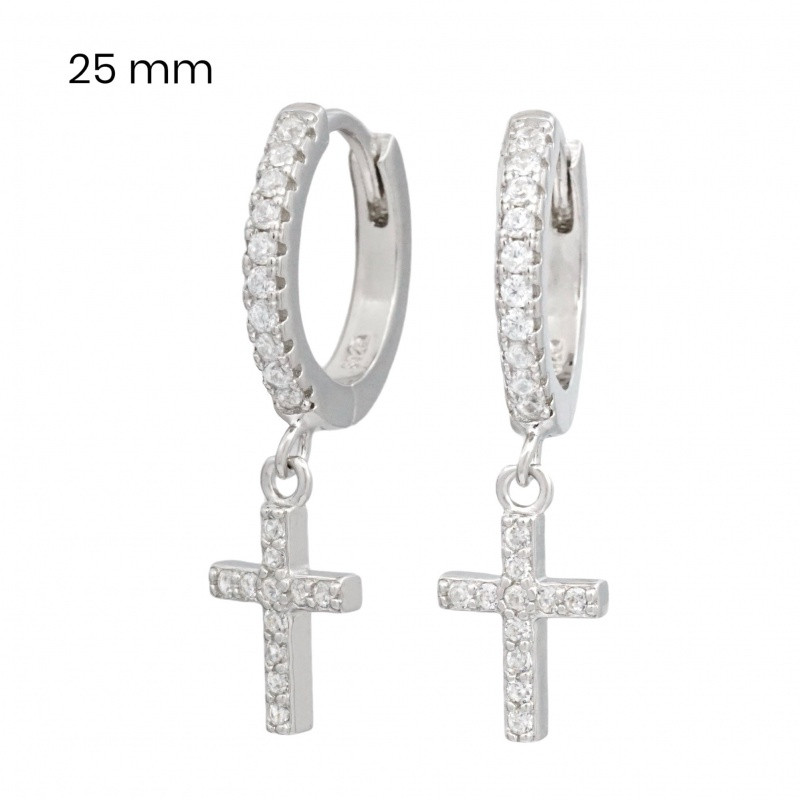Silver hoop earrings with dangling cross
