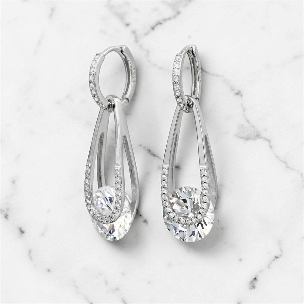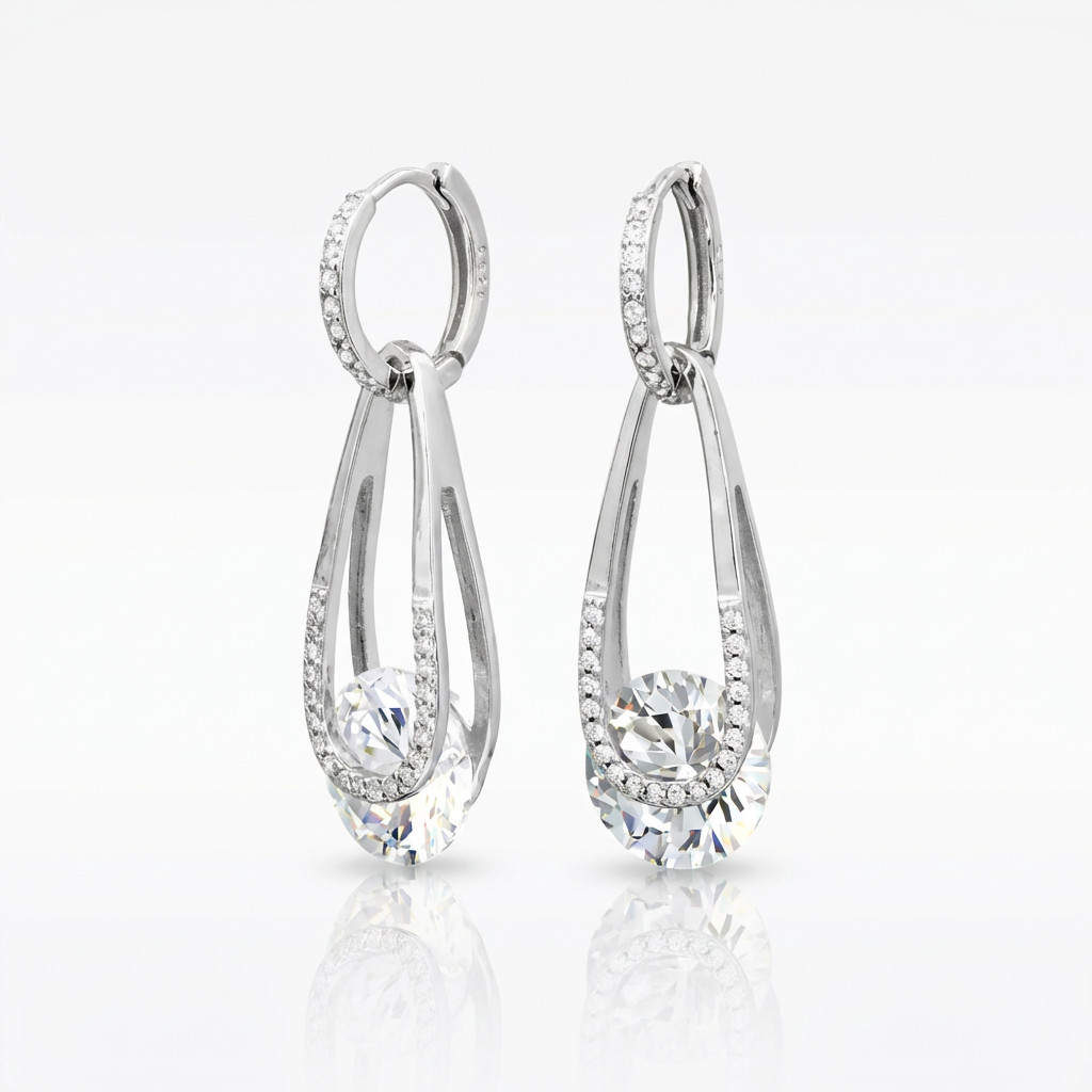 Silver hoop earrings with dangling drops 2-in-1