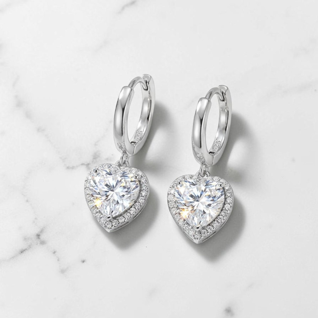 The silver hoop earrings with sparkling zirconia hearts are a great choice for soft, pastel colors, romantic dresses, or light spring-summer outfits, but they also go perfectly with little black dresses.