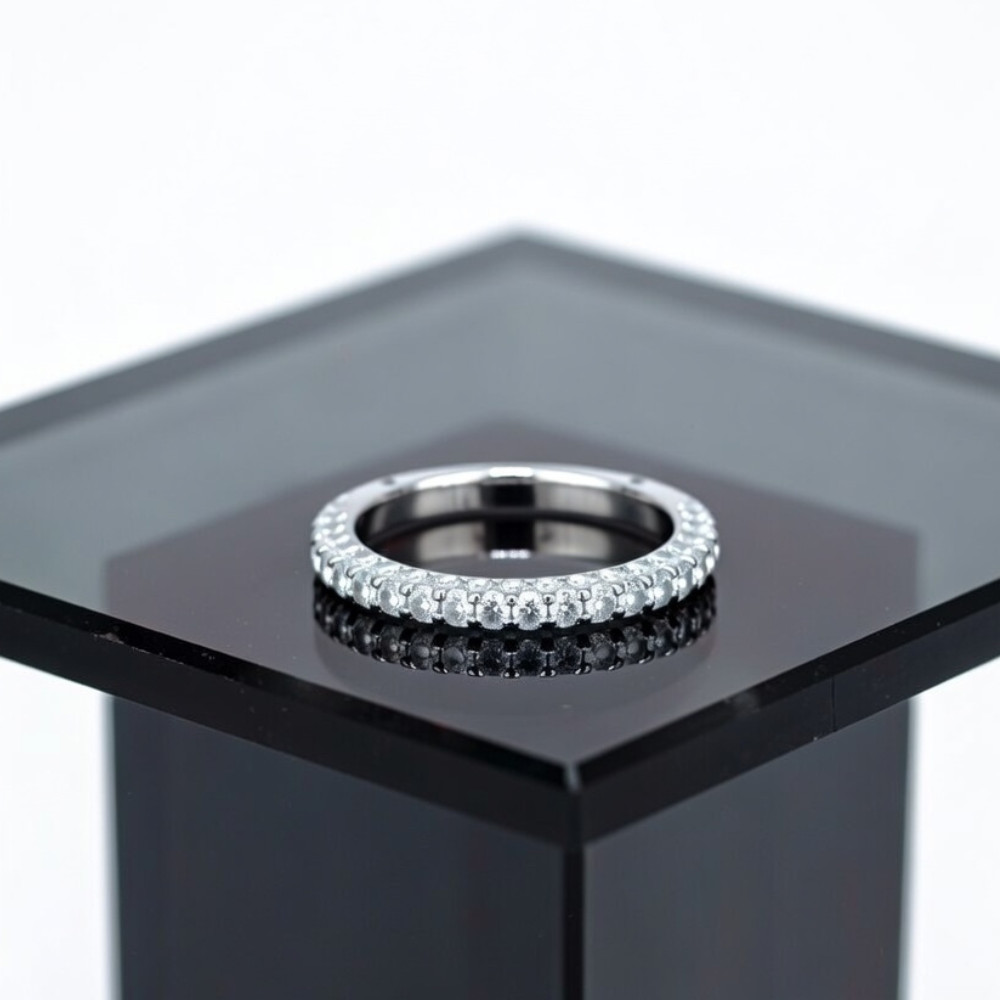 If you love sparkling jewelry, this ring will be your new favorite. The multitude of precisely set zirconia stones give off such an intense light that it's as if your hand were covered in pure diamond dust. The infinity motif, with its interlocking circles, symbolizes endless possibilities and eternal values. The sterling silver frame provides a secure hold for the stones, while its cool elegance further highlights their fire. This piece of jewelry not only adorns you, but also makes your aura shine.