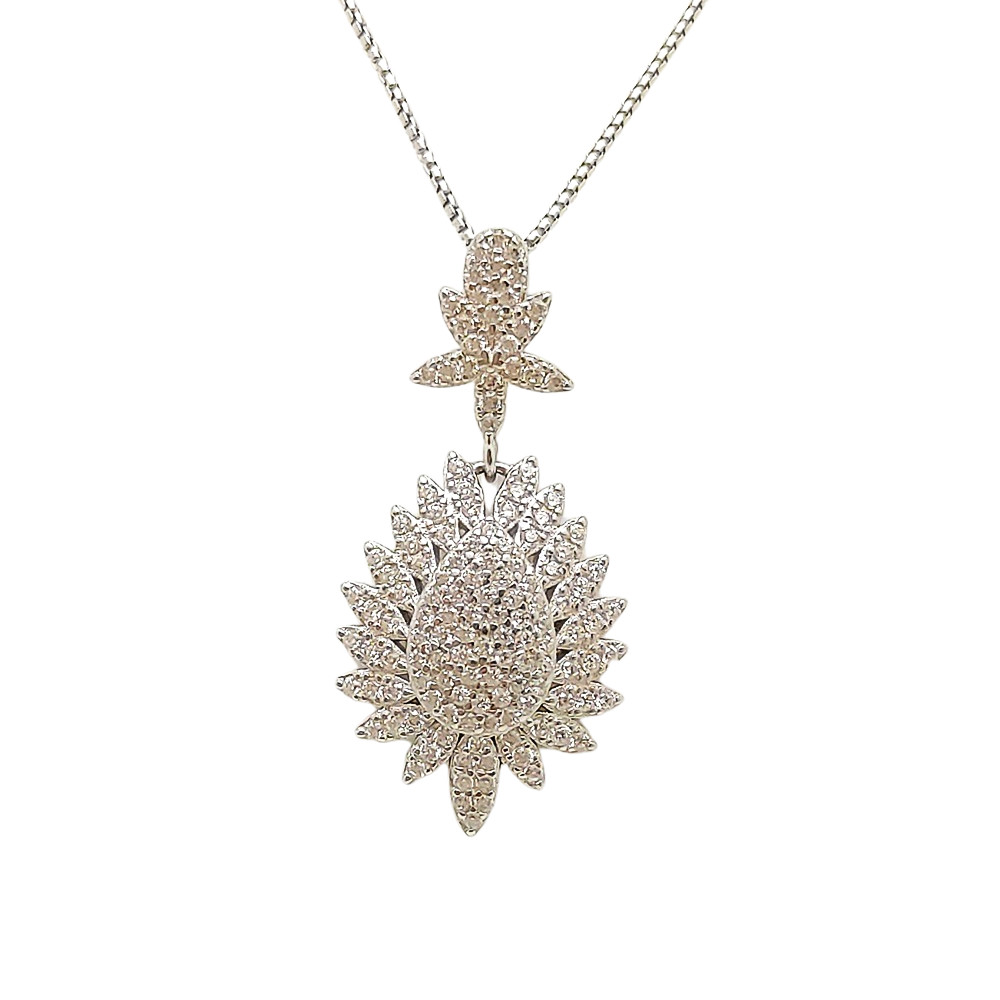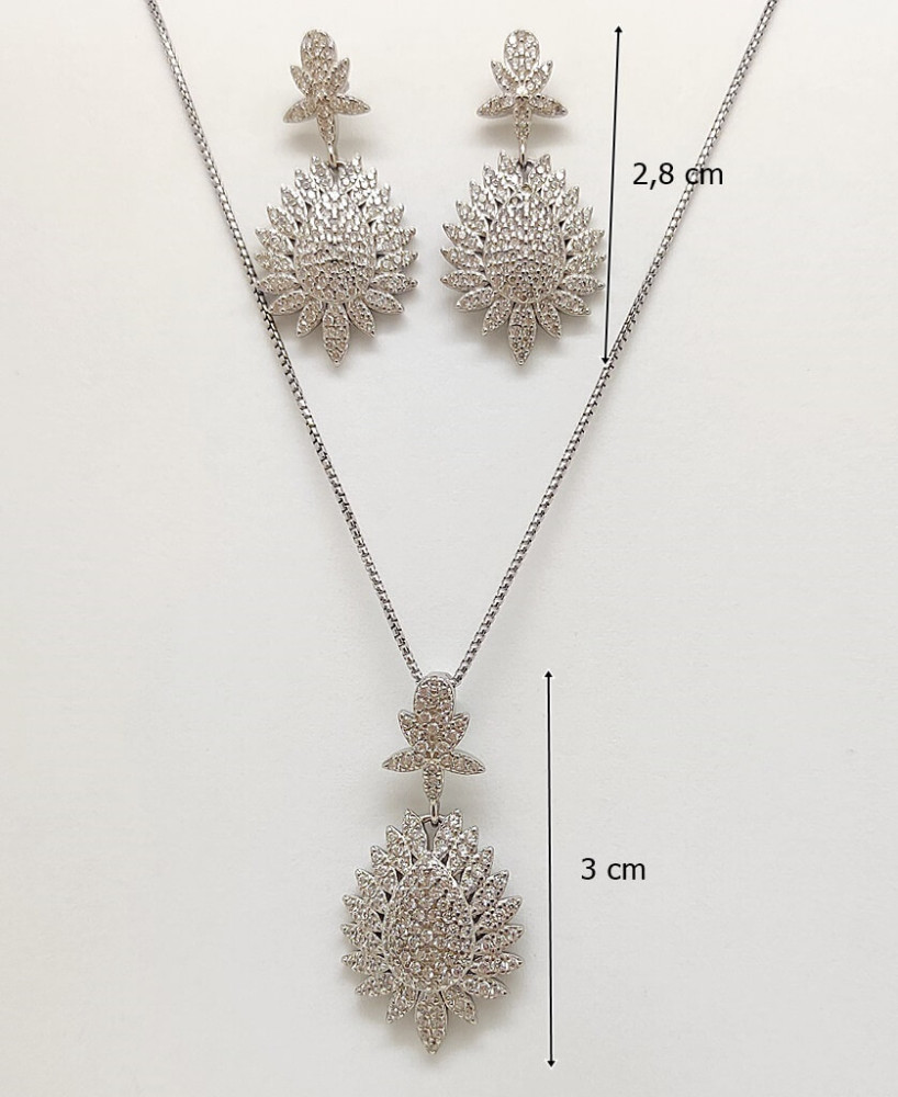This elegant silver jewelry set with pendant earrings and flower pattern zirconia stones is the perfect choice for any occasion. The set is made of high-quality 925 Sterling Silver, which is not only durable but also hypoallergenic, making it ideal for those with sensitive skin. It includes a beautiful Pendant and matching stud earrings, decorated with a delicate lace flower pattern and sparkling zirconia stones. The dazzling sparkle of the zirconia stones beautifully highlights the details of the floral pattern, ensuring that the wearer will attract everyone's attention. This jewelry set is an ideal gift for your loved ones or a perfect addition to your own jewelry collection, which you can wear on special occasions. (The chain is for illustration only and is not included.)