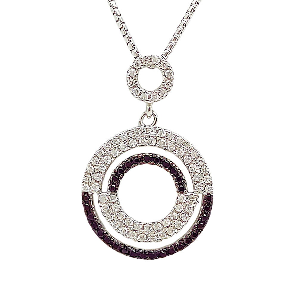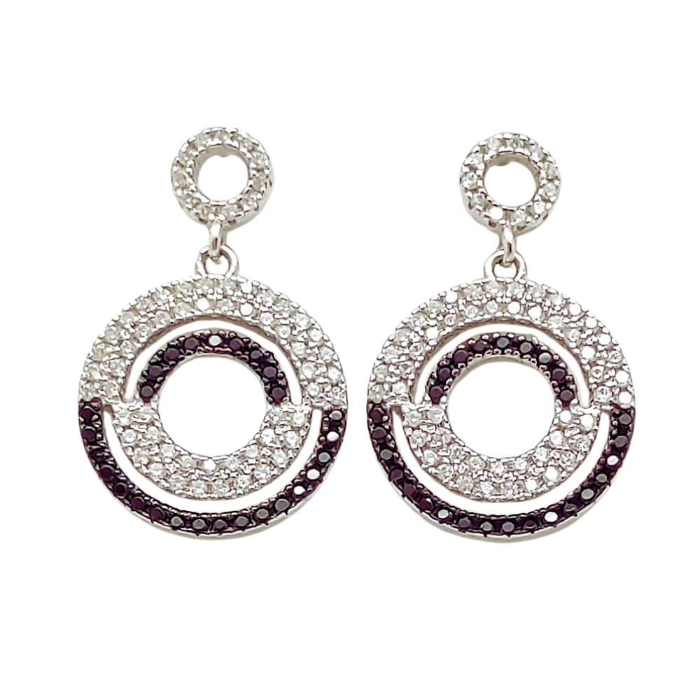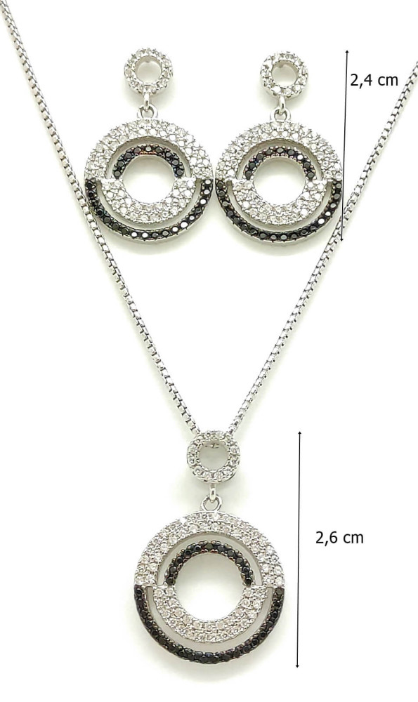 The silver jewelry set with pendant and earrings, decorated with black and white zirconia, is the embodiment of modern elegance.