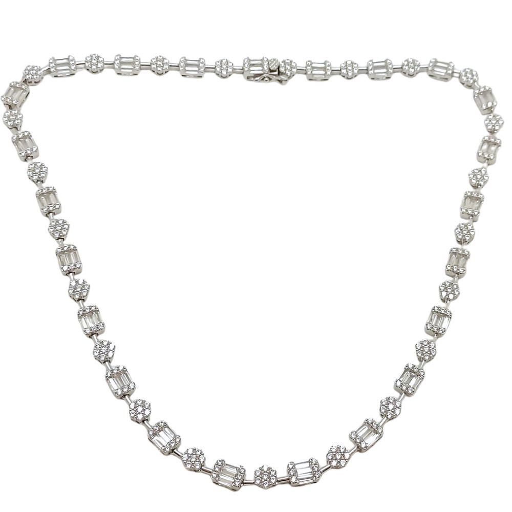 This 925 Sterling Silver necklace is the perfect combination of modern elegance and nature-inspired design. The chain is made unique by its floral details and Geometric rectangular elements. The rhodium-plated coating ensures that the jewelry retains its sparkling shine for a long time.