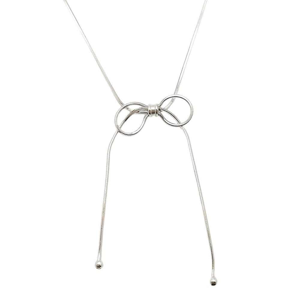 >Style tip: Wear this necklace with a delicate, elegant blouse or a romantic floral dress to highlight the playful and charming nature of the bow. It is the perfect accessory for a date, family gathering, or even a wedding guest appearance. It also works well for everyday wear when paired with a simple, light-colored T-shirt or shirt. Pair it with small, understated earrings to keep the focus on the necklace and complete your romantic look.