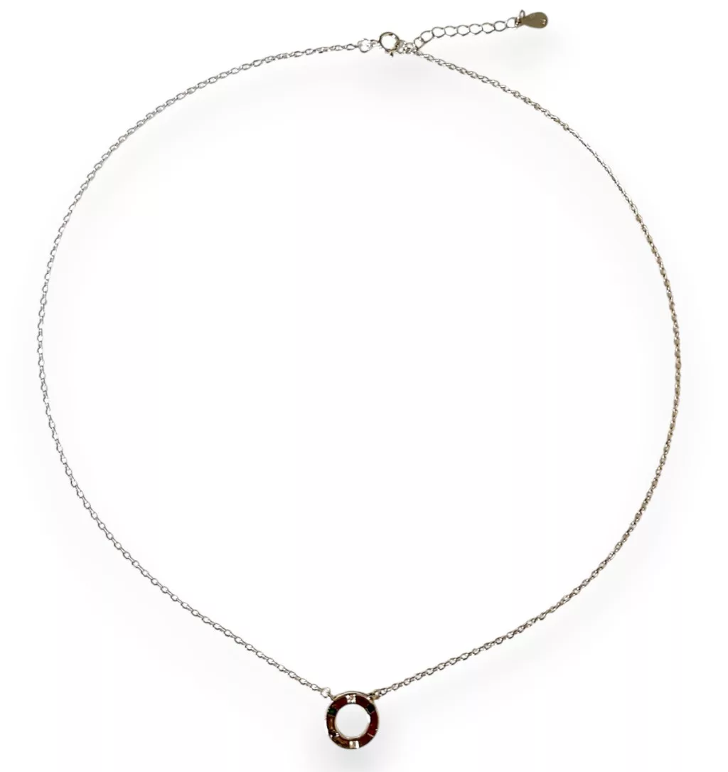Style tip: The circle pendant silver necklace looks especially good with solid-color tops, such as white, black, or powder pink, allowing the colorful stones to really stand out. Pair it with understated earrings or a colorful bracelet for a fresh, vibrant look.