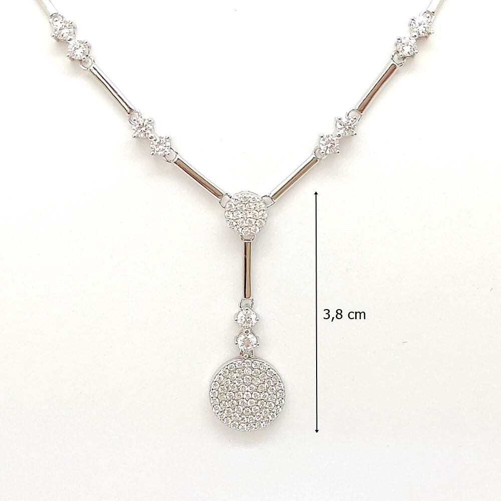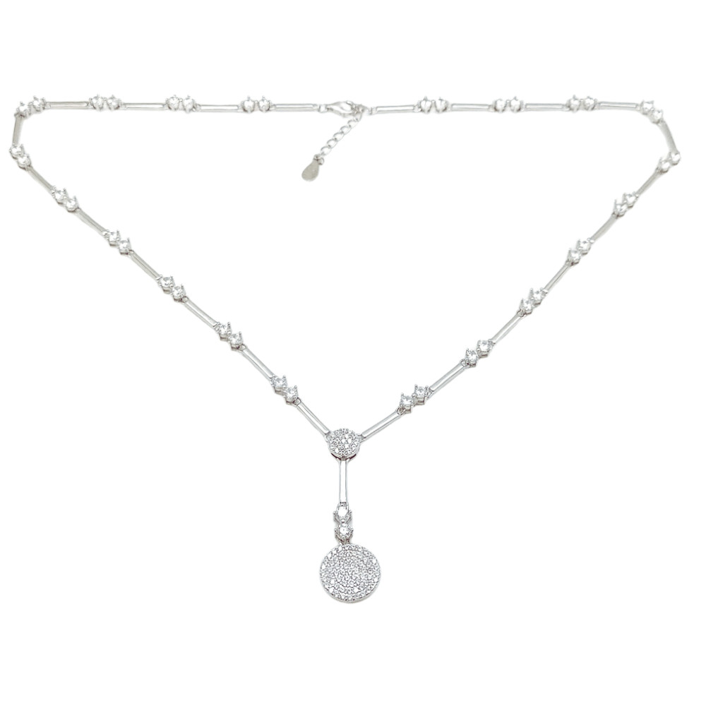 The silver necklace with Y-shaped zirconia stones is a truly unique and elegant piece of jewelry that is perfect for any occasion.