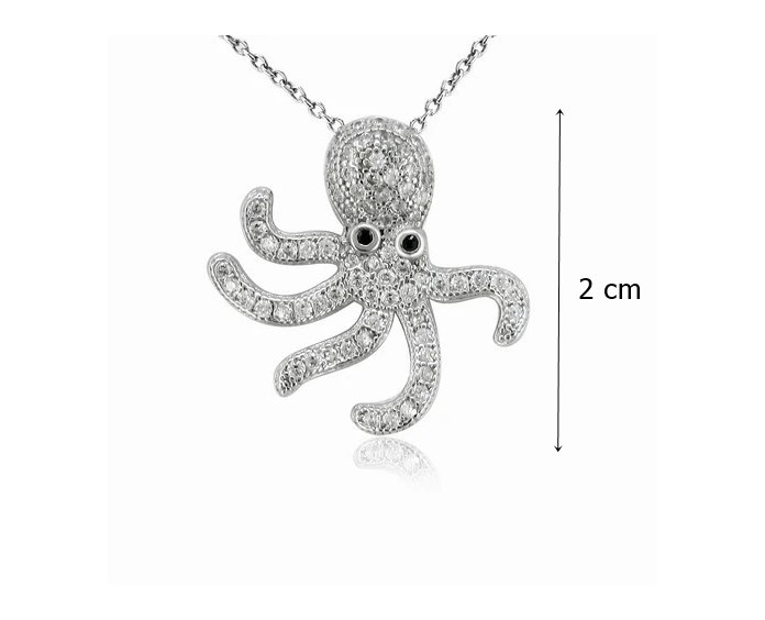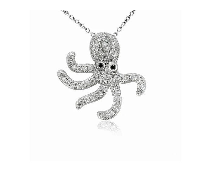 Silver octopus pendant with zirconia