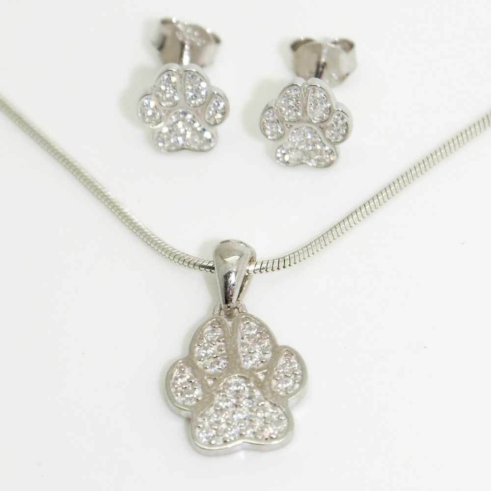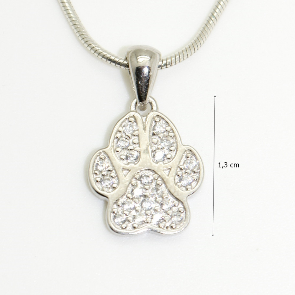 Sparkling silver paw animal pendant, encrusted with zirconia stones.