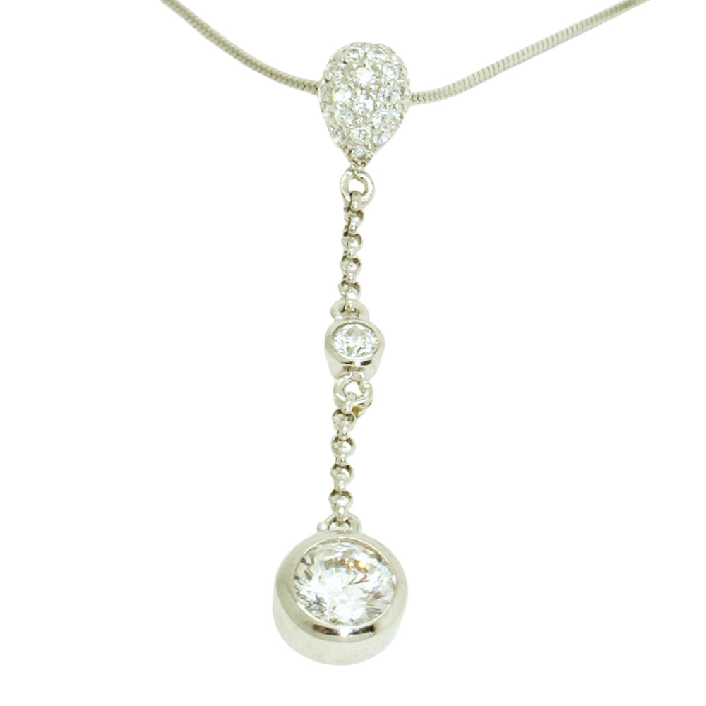Elegant silver pendant with sparkling zirconia stones. Made from high-quality 925 Sterling Silver, which is not only durable but also hypoallergenic, making it ideal for those with sensitive skin. Complete the look with matching Drop / Dangle earrings, or wear it on its own with a neckline that shows off your neck. (The chain is for illustration only and is not part of the jewelry.)