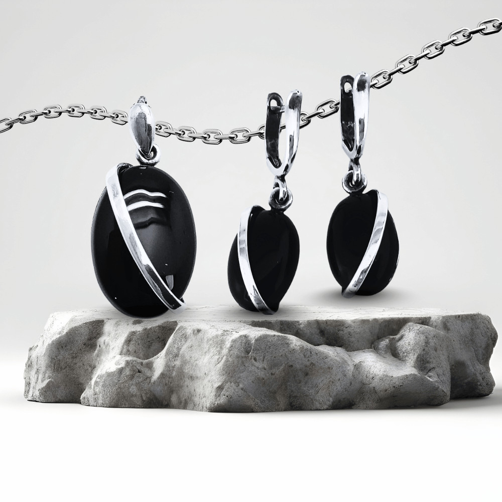 Wear it with black, gray, or dark blue outfits to bring out the shade of the onyx. Pair it with delicate silver earrings or a ring for a harmonious, modern look.