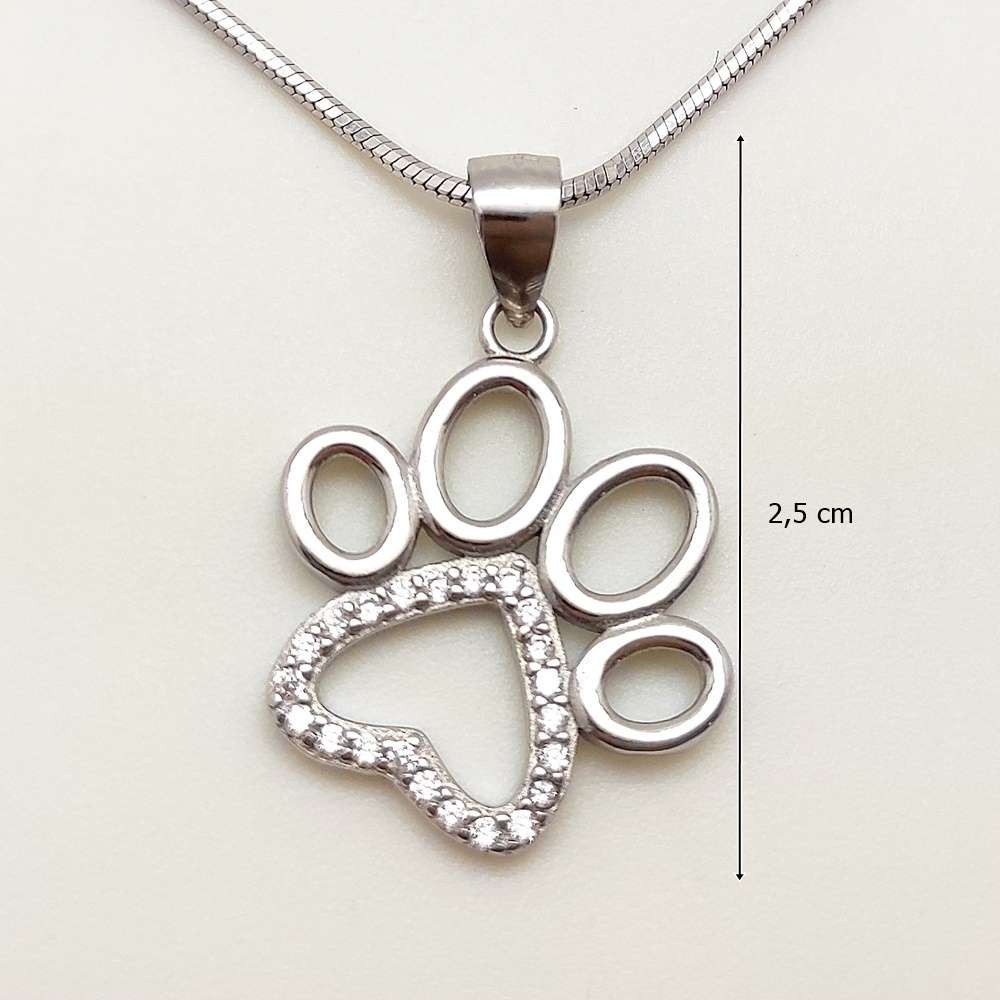 This charming silver pendant will make the heart of every animal lover beat faster. The center of the pendant features a sparkling paw motif, decorated with tiny zirconia stones for extra sparkle. The jewelry is made of 925 Sterling Silver, which guarantees durability and an elegant appearance. This pendant is not only aesthetic, but also expresses your love and commitment to animals.
