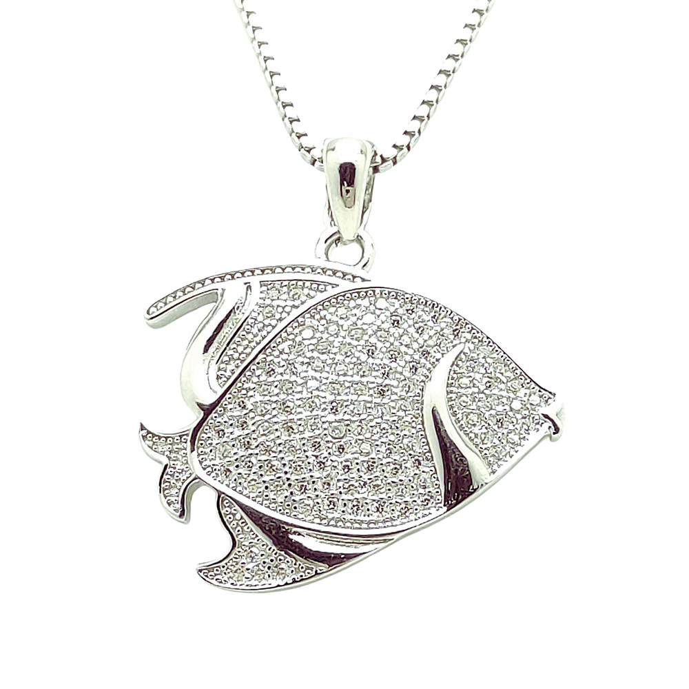 Be elegant and unique with this silver animal pendant, adorned with sparkling zirconia stones in the shape of a fish! This pendant is made of 925 Sterling Silver and has a beautiful, intricately crafted fish shape decorated with sparkling zirconia stones. The fish is a symbol of freedom and abundance, making this piece of jewelry the perfect choice for everyday wear so you can always carry these positive energies with you.