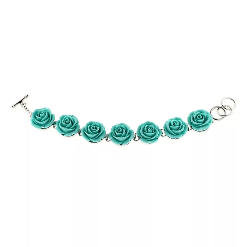The size of the bracelet is easily adjustable, so it fits comfortably on any wrist. The turquoise roses lend an elegant and romantic look that goes with any outfit. Wear this silver-plated bracelet on its own to highlight your unique style, or combine it with other jewelry for an even more stunning effect.