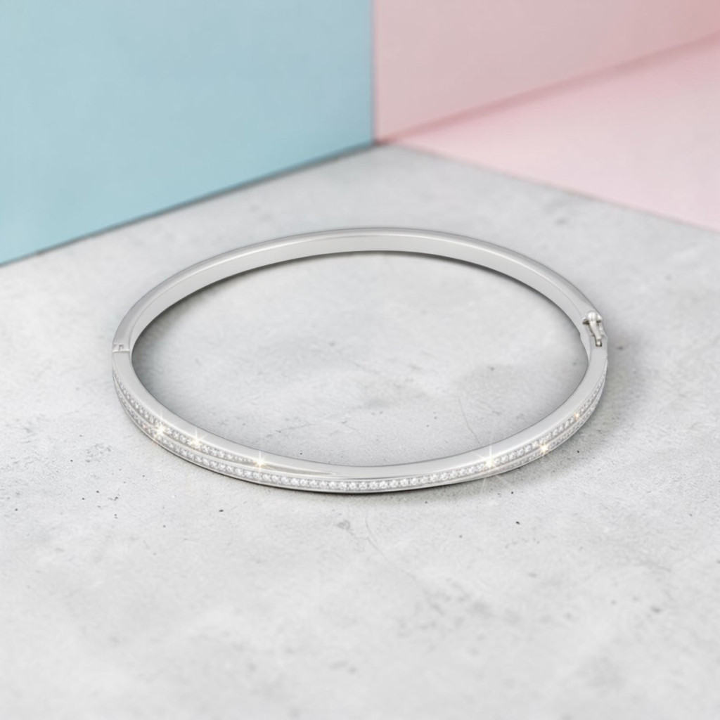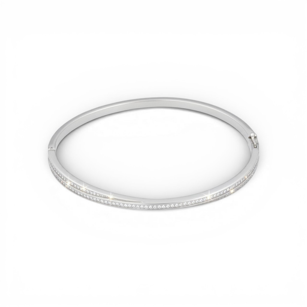 Silver bangle bracelet with small stones