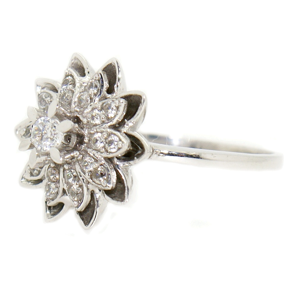 Silver ring with black zirconia flower