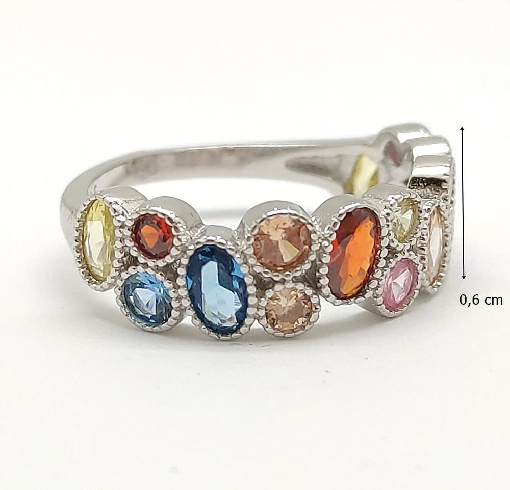 Shine and sparkle with this silver ring encrusted with colorful zirconia stones! This 925 Sterling Silver ring perfectly combines classic elegance with modern style. The ring is decorated with colorful zirconia stones that sparkle beautifully in the light and are suitable for any occasion.