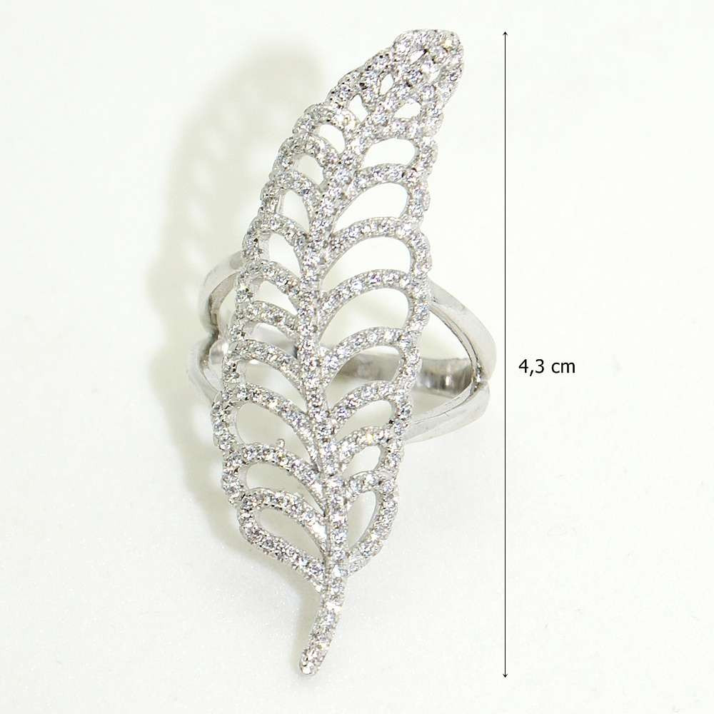 Silver ring with leaf pattern and zirconia stones