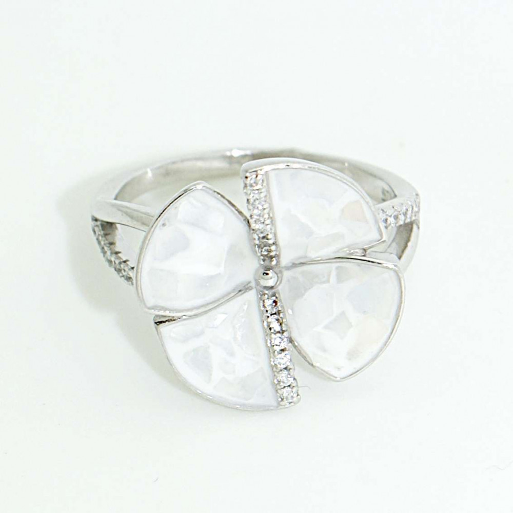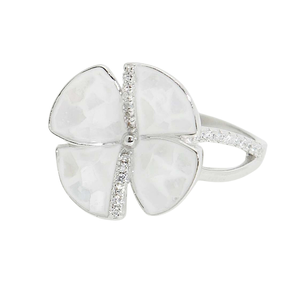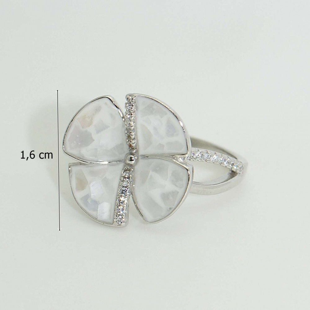 Silver ring with mother-of-pearl flower