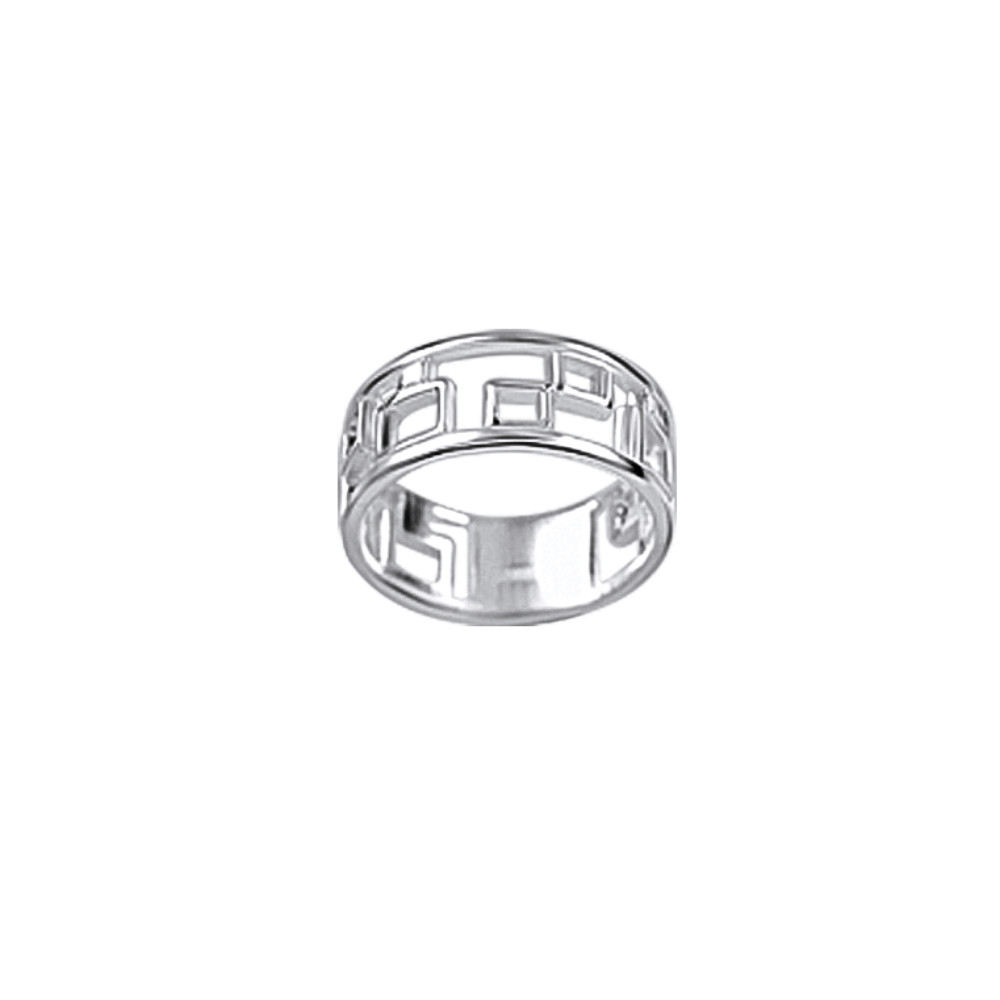 The silver ring decorated with square openwork patterns offers a timeless look with a slightly antique style. Made of 925 Sterling Silver, it is particularly light and elegant thanks to its precise workmanship. The geometric motif playfully allows light and skin to shine through, giving the ring a truly airy effect.