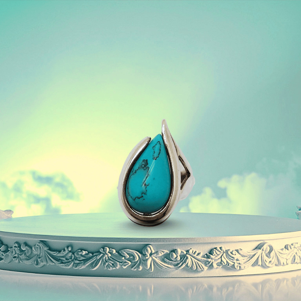 The turquoise stone silver ring brings a sense of calm, freshness, and eternal summer.