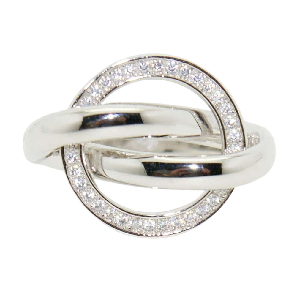 Silver ring with zirconia stones around the circumference