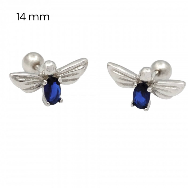 Silver stud earrings with blue beetles