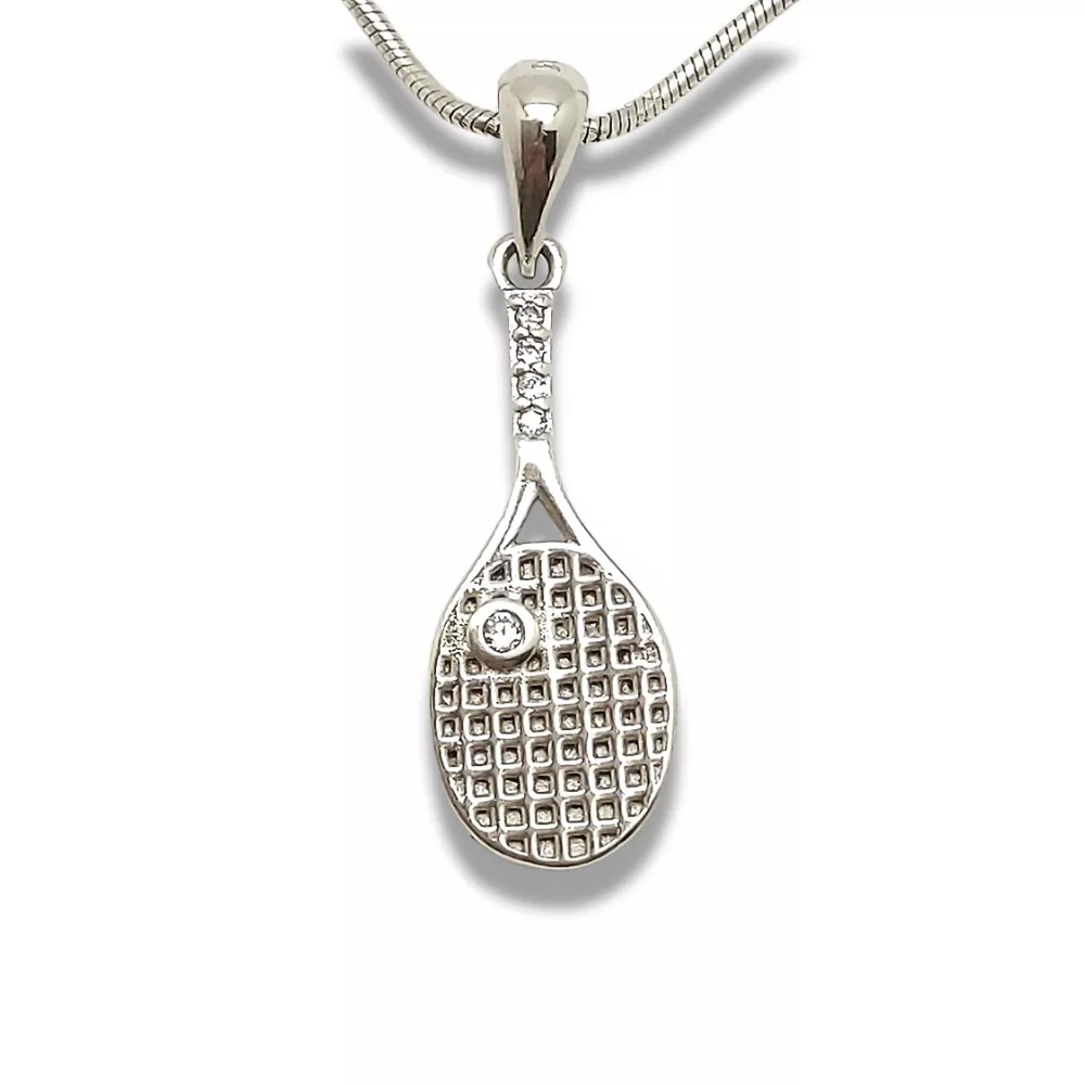 This 2.8 cm long sterling silver tennis racket pendant embodies a love of sport and the energy of an active lifestyle.
