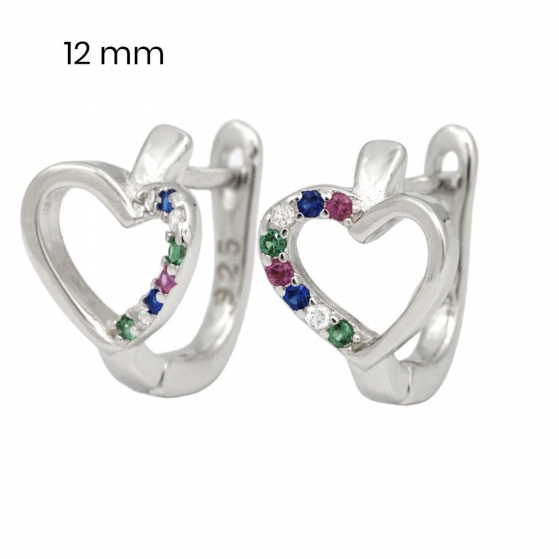 These earrings are the perfect choice if you are looking for a special gift for a loved one or if you want a new, beautiful piece of jewelry for yourself. They are also recommended for children. The colorful zirconia stones and heart shape combine to create a unique and romantic look that is sure to enchant everyone. Wear these silver-tone heart earrings and bring the magic of colors and lights into your everyday life.