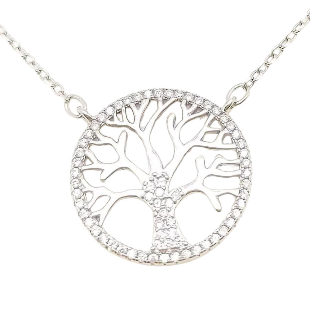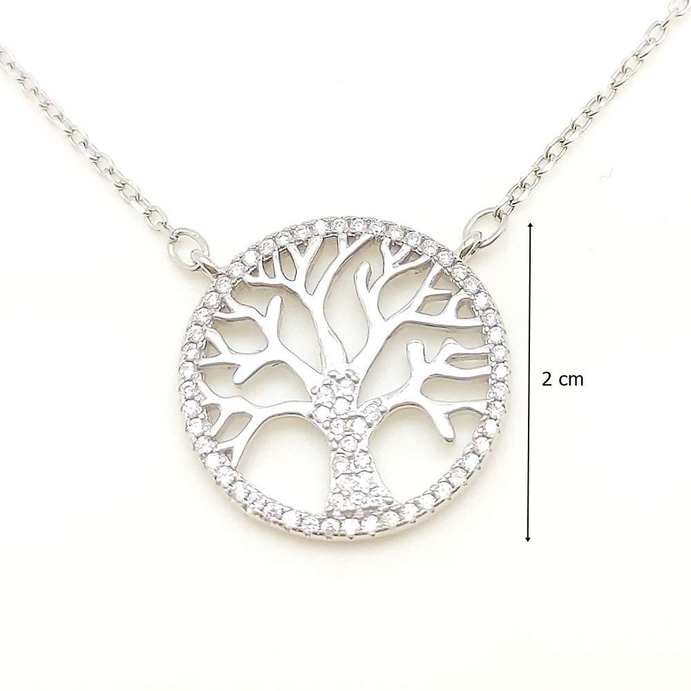 This stunning rhodium-plated silver (925) necklace features the tree of life motif, with the trunk of the tree hanging from an anchor chain and the outline of the Pendant decorated with zirconia stones. The tree of life is a symbol of the continuity of life, rebirth, and growth. The roots symbolize the past and our ancestors, the trunk represents the present and individual development, and the canopy refers to the fullness of life, the future, and endless possibilities. Whether you love symbolic jewelry or just like the tree motif, this silver tree of life necklace can be the perfect accessory for you. You can wear it for everyday wear or with a more elegant, monochrome outfit, but it also works well as a bracelet when wrapped around your wrist.