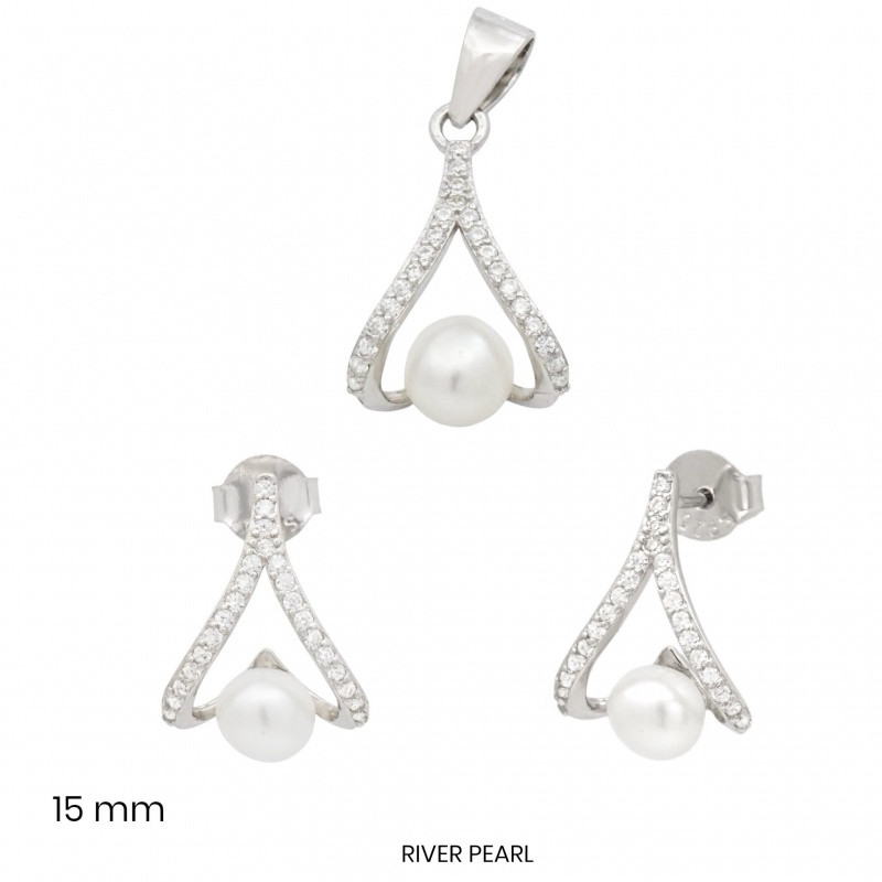 The triangular shape gives the jewelry character, making it ideal for those who love timeless pieces but also want a touch of modernity in their style. The jewelry set is the perfect companion for both office wear and evening wear, as it easily complements clean and elegant outfits. The natural, soft luster of the pearls looks beautiful on all skin tones and retains its classic value over time.
