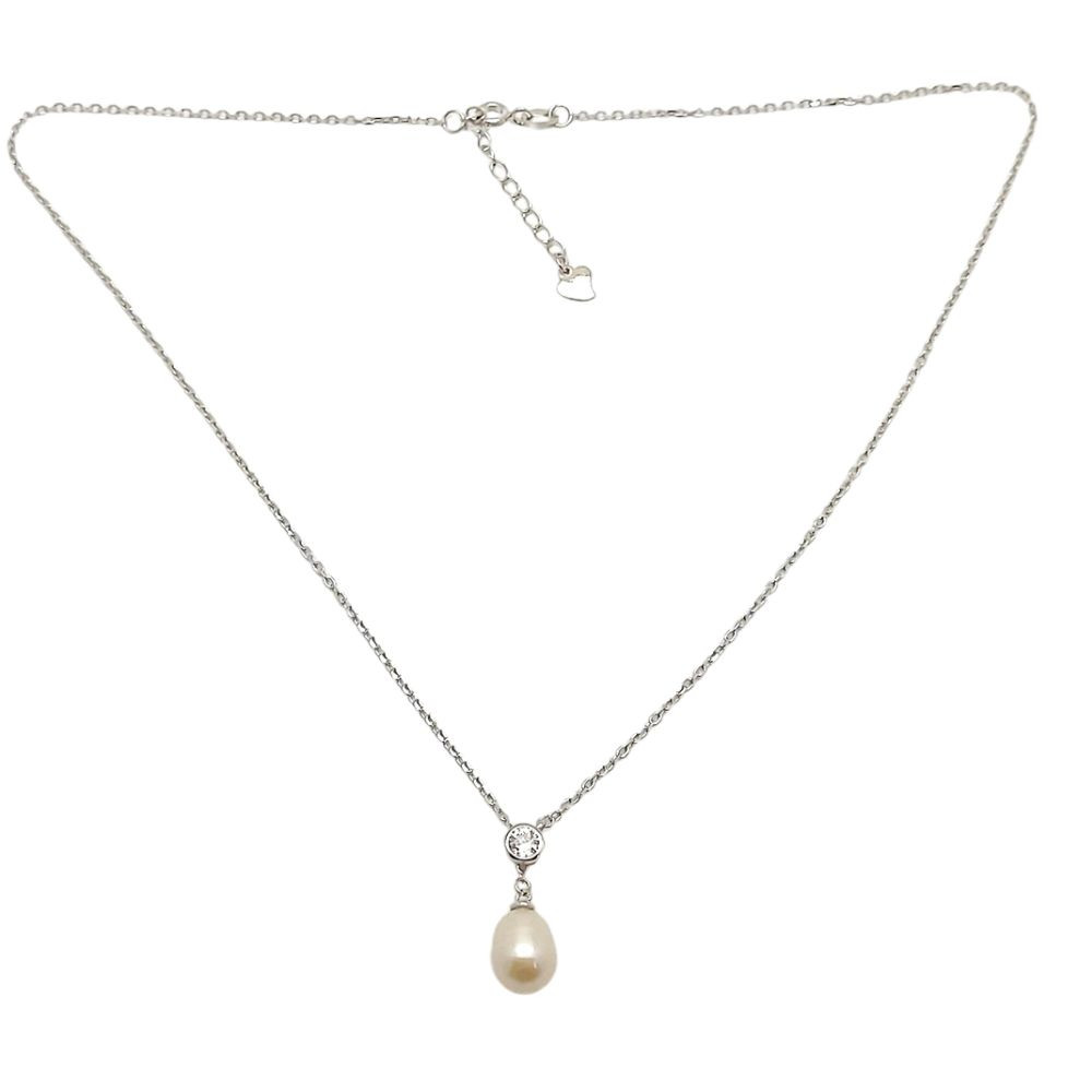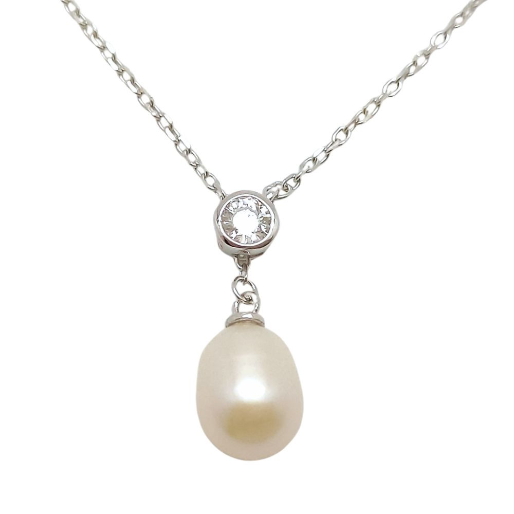 Silver Y-chain with teardrop-shaped pearl