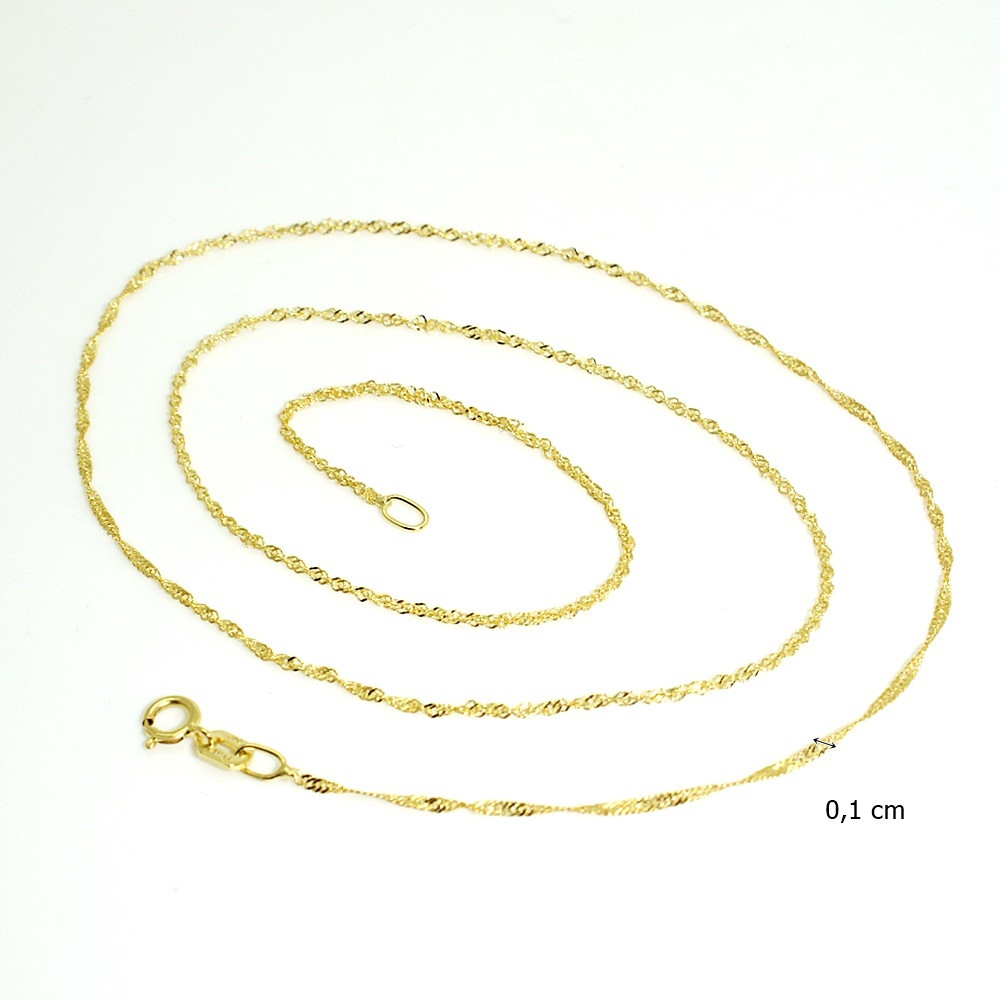 A 14-karat Singapore yellow gold necklace that you can wear on its own, layer with other chains, or complement with a gold pendant.