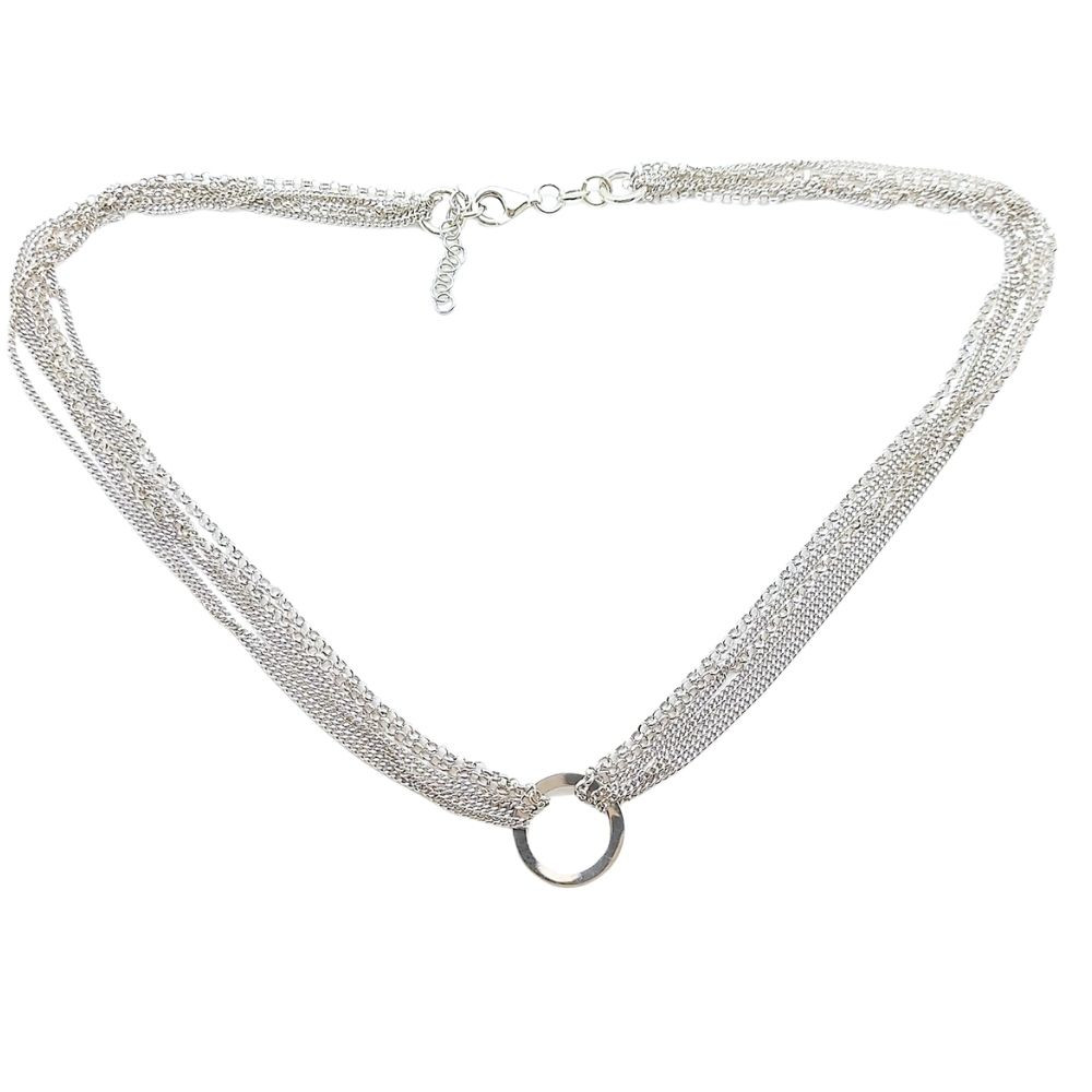 Six-strand silver pendant necklace