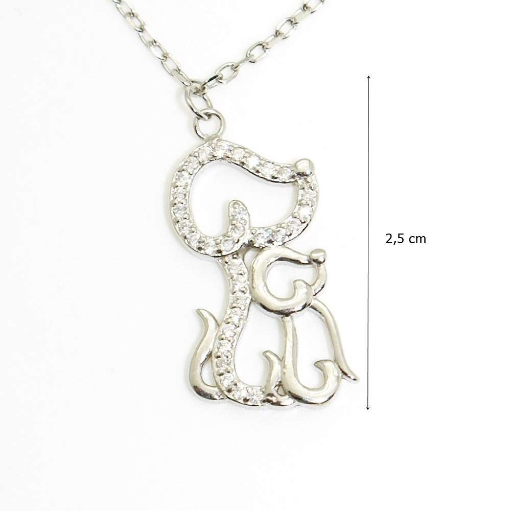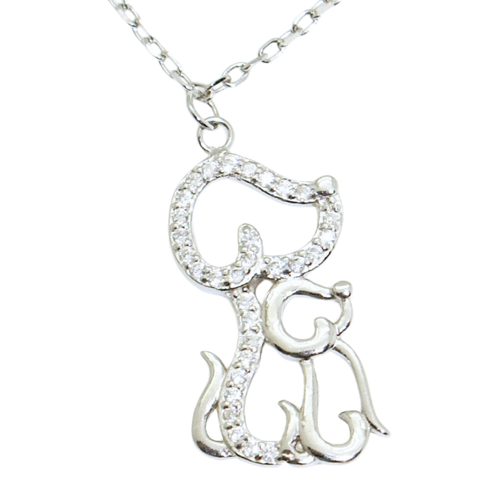 The silver necklace captures a sweet scene that can be interpreted as the friendship between two dogs or a mother and her puppy. The two dog figures have two different personalities: while the smaller one is gentle and reserved, the larger one is decorated with sparkling zirconia stones, emphasizing that it certainly cannot be ignored. This wonderful little dog and big dog silver pendant chain is best worn with clothes that draw attention to your neck.