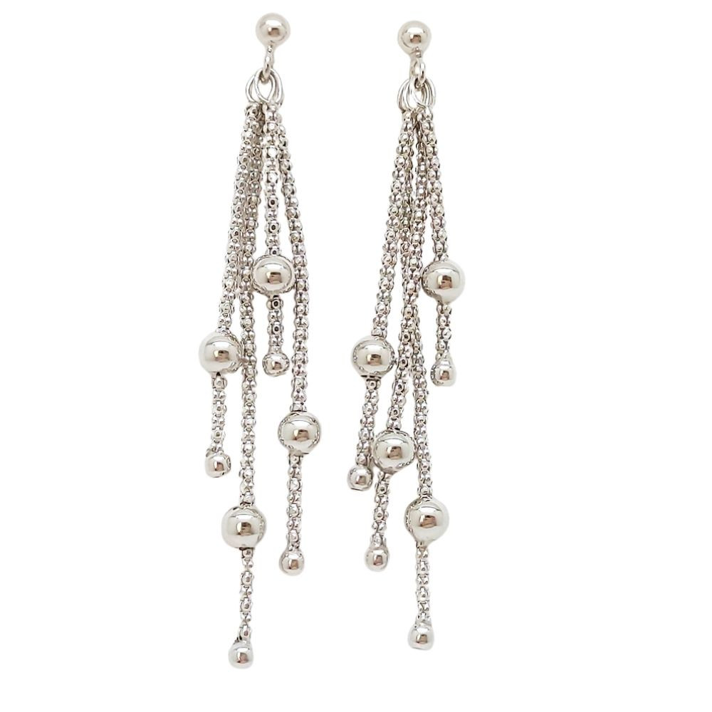 Drop / Dangle earrings decorated with dangling spheres are playful and elegant at the same time. The light movement of the 925 Sterling Silver spheres creates a dynamic and youthful effect. The rhodium coating ensures that the jewelry retains its shine for a long time.