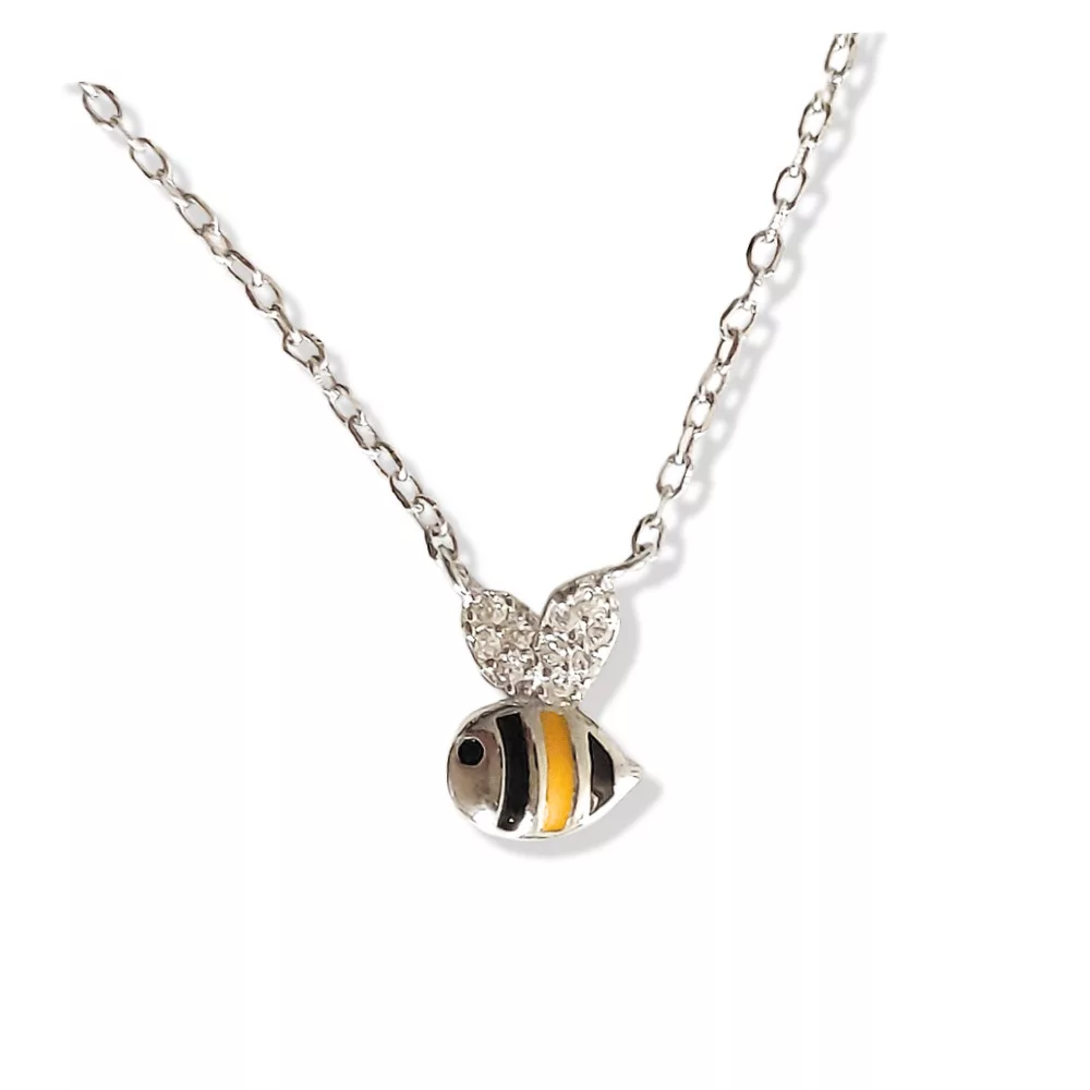 The bee's yellow and black striped body is made to shine with two wings decorated with zirconia stones. Its size is discreet yet distinctive, making it the perfect choice for those who love to wear small, meaningful symbols. The bee is a symbol of diligence, community, and fertility, so this piece of jewelry is not only decorative but also meaningful.