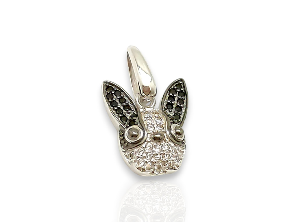Ez a Boston terrier fej ezüst medál a fajta jellegzetes, értelmes tekintetét és ikonikus füleit örökíti meg. A gondosan válogatott fekete és fehér cirkónia kövek élethűen mintázzák a terrier arcát, a ródiumozott ezüst pedig prémium keretet ad a kompozíciónak. Mindennapi viseletre is ideális, emlékeztetve téged négylábú barátodra a nap minden percében. Kiváló ajándékötlet kutyás gazdiknak, akik valami igazán egyedi és minőségi kiegészítőt keresnek.