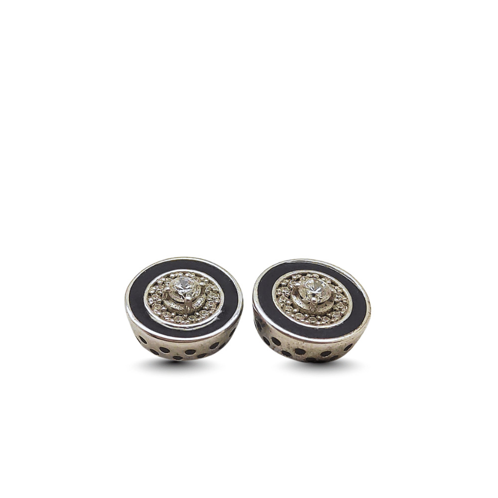 These silver earrings with black inserts and stones create a striking yet elegantly clean look. The 925 rhodium-plated silver hypoallergenic design makes them comfortable to wear, while the black inserts add a modern contrast to the jewelry.